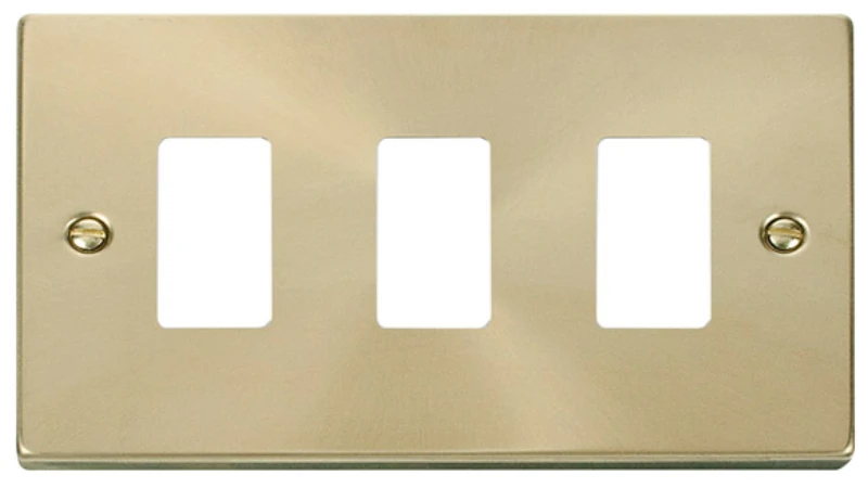 Click Scolmore Victorian Satin Brass 3 Gang GridPro Frontplate