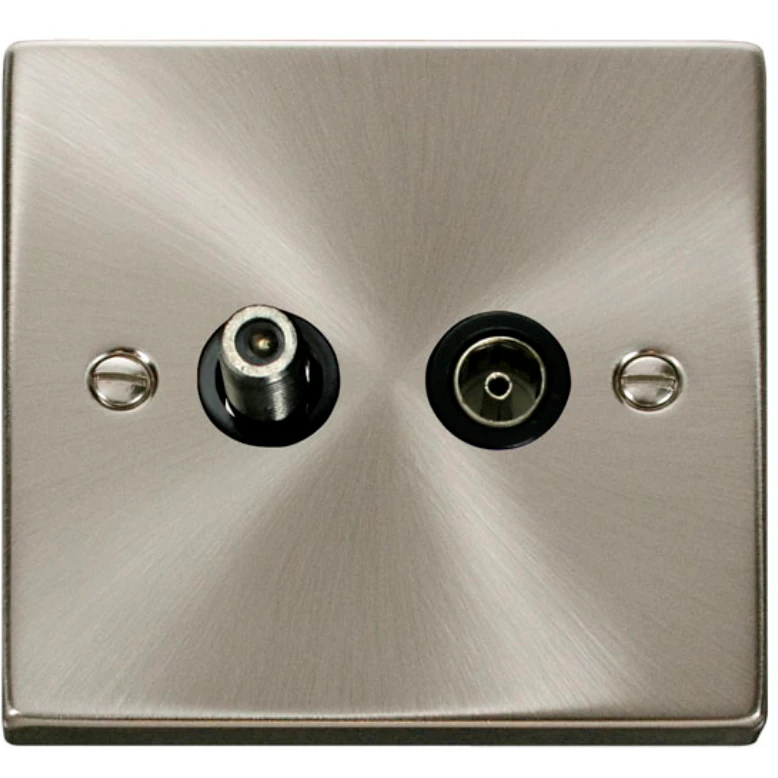 Click Scolmore Victorian Satin Chrome Black Insert Non-Isolated Satellite & Non-Isolated Coaxial Outlet