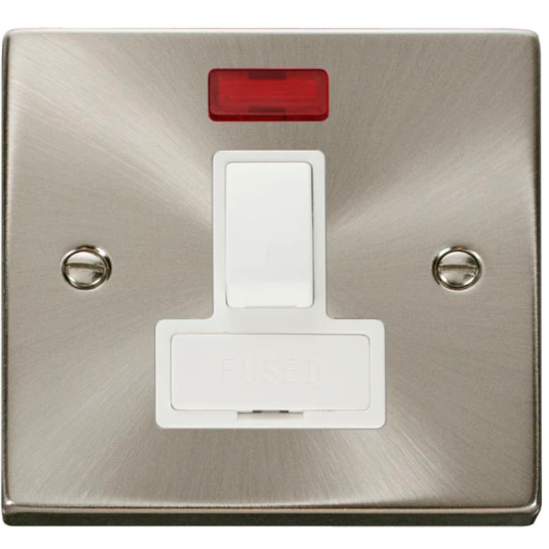 Click Scolmore Victorian Satin Chrome White Insert 13A Double Pole Switched Fused Connection Unit With Neon
