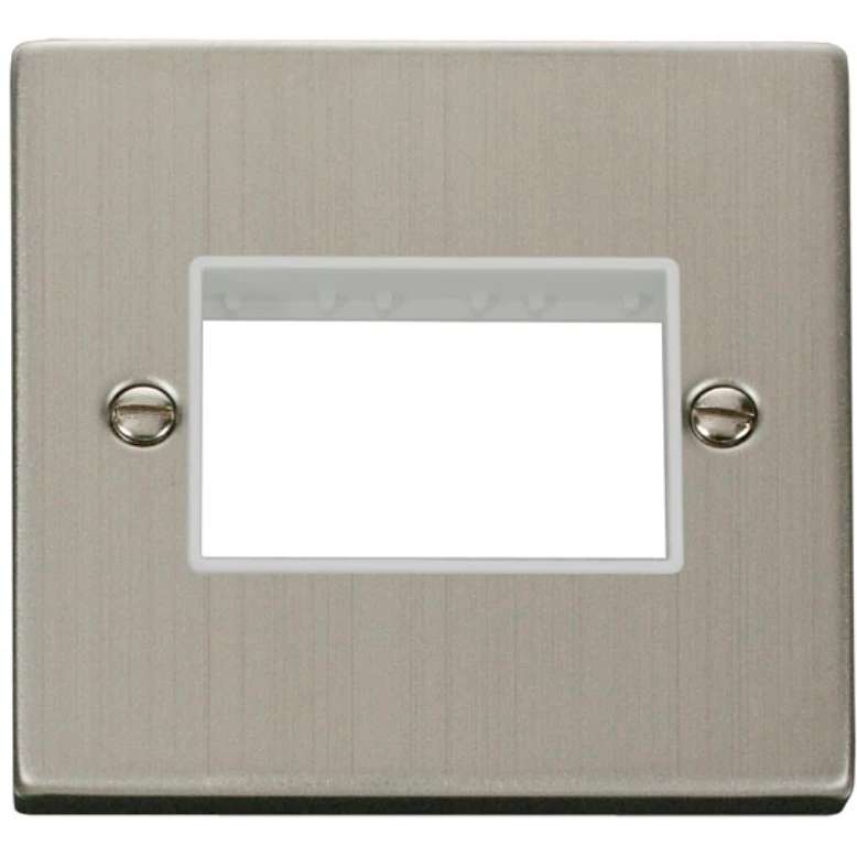 Click Scolmore Victorian Stainless Steel White Insert 1 Gang MiniGrid Unfurnished Plate 3 Apertures