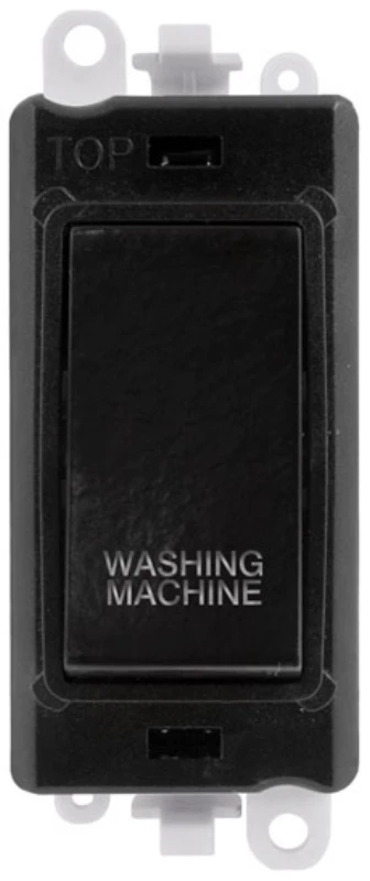 Click Scolmore Washing Machine Laser Etched Legend Black Frame 20AX Black Double Pole Switch Module