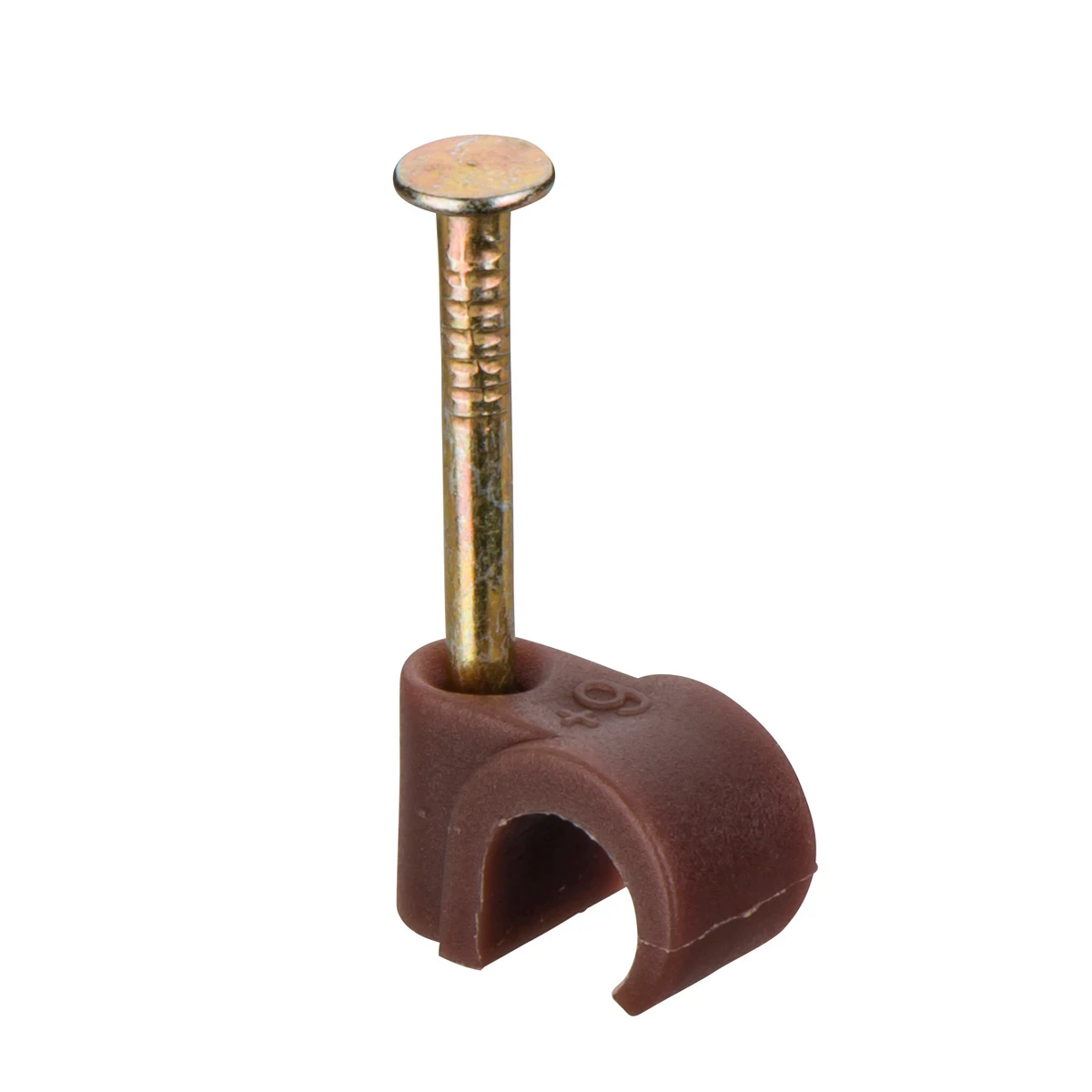 Technical Specifications Technical Specifications Nail-in cable clip Material Steel Shape Round (for round cable) Colour Brown Surface protection Galvanic/electrolytic zinc plated Suitable for diameter 6 – 7 mm