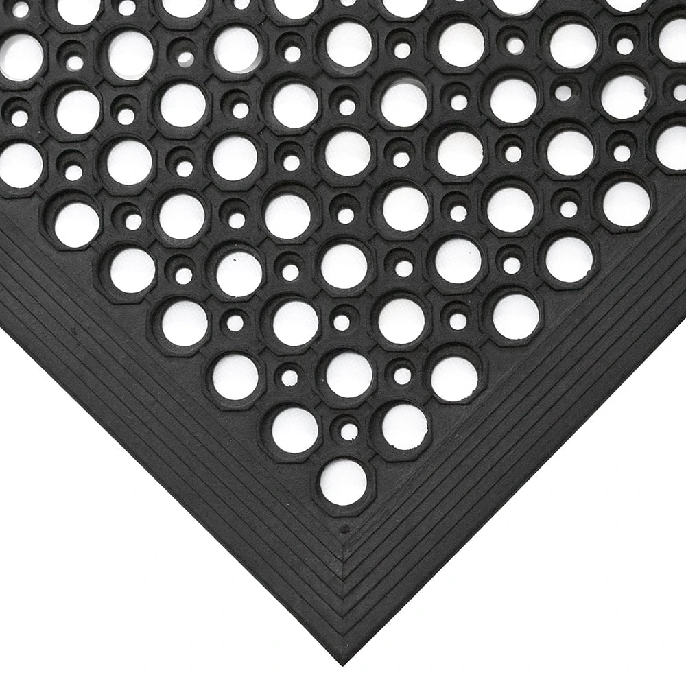 Rubber doormat specifically designed to accommodate shoe cleaning applications on an entrance/exit which is situated on a slope or at an angle. Doormat has a raised circular surface made up for superior slip resistance. · · · A popular choice of doormat, suitable for most climates. · · The raised honeycomb design provides grip while scraping away dirt and moisture. · · Moulded bevelled edging for trip-resistance and wheeled access. · · Manufactured from durable rubber. · · The perfect low-cost doormat to scrape dirt and wipe moisture · · Slip tested to DIN 51130.