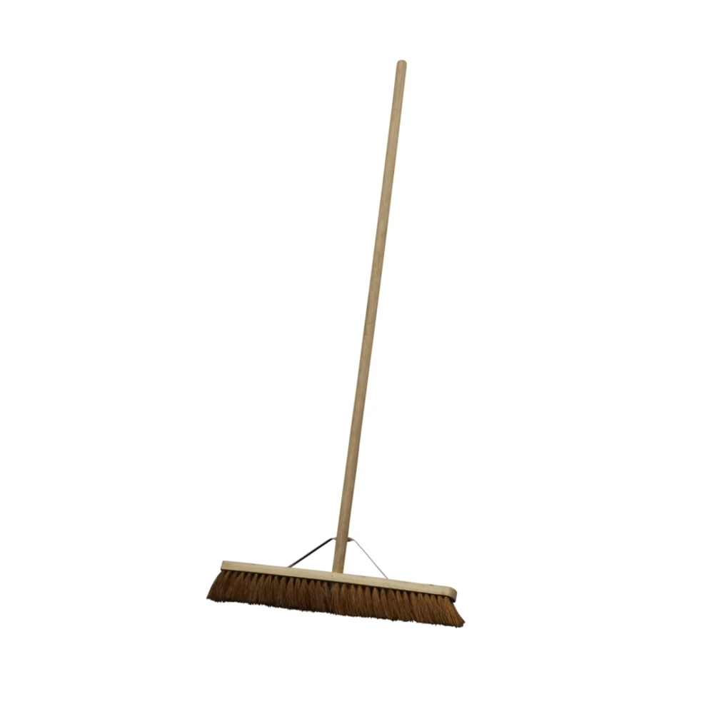 Extra wide soft-bristled broom with a reinforcing stay for stability. Robust wooden broom ideal for use all year round. · · · Suitable for indoor and outdoor use · · Ideal for general cleaning duties · · Made from natural Coco · · Durable tip fibres · · Effective at sweeping up dirt and debris