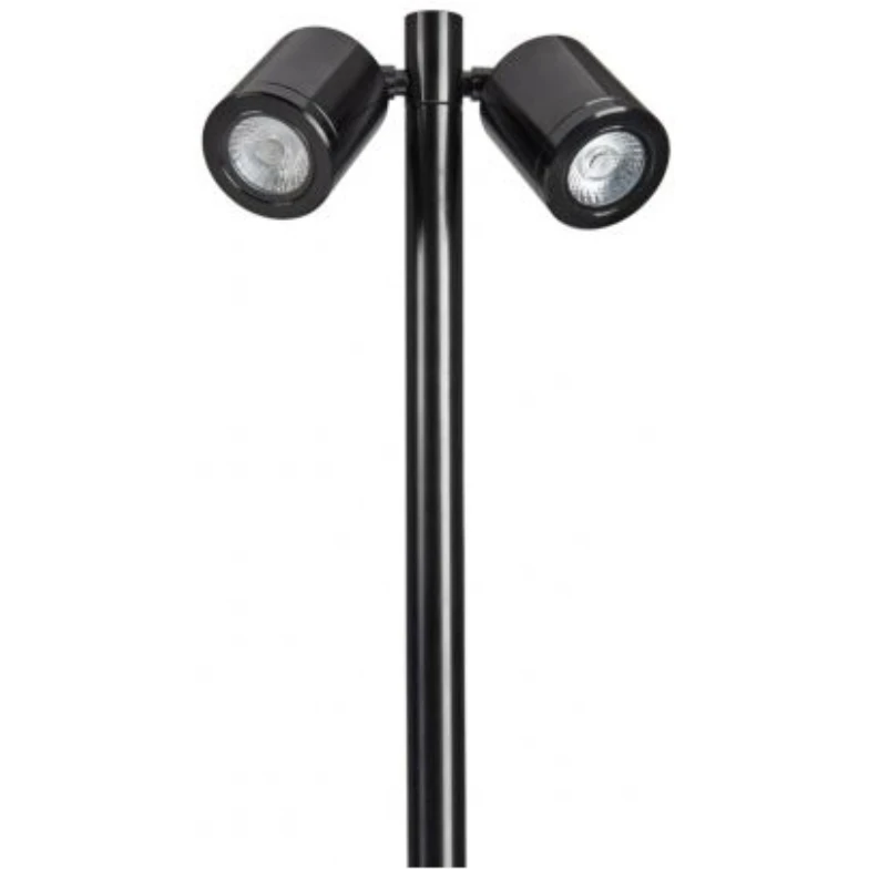 Sleek and contemporary, these twin pole spike lights offer a great new and practical way to illuminate your landscape with interesting and discreet lighting angles. Featuring two SL220 spike light luminaires with one leader cable, you can direct light up or down via rotatable heads, for perfect illumination of pathways, features and trees. Features include IP65 rating for outdoor use, efficacy of 144lm/W, tiltable up to 90 degree and rotatable up to 330 degree. There are also straight to mains and low voltage options, three colour temperatures to choose from and a bronze finish version. A seven-year warranty is also available. Upgrade the look and feel of your spike light with a simple low glare hood or snoot, for optimum light distribution, or calming moonlight effect. · · · Adjustable pole-mounted twin heads are perfect for illuminating paths, steps and trees · · Easily ground mounted with spiked pole and single cable for quick installation · · Elegant and discreet black and bronze finishes · · Available in both low voltage and mains voltage · · Highly efficient: up to 93lm/W · · 7-year warranty