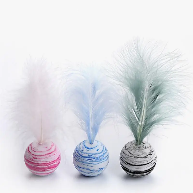 Colorful Feathers Starry Sky Ball Cat Toys Teasing Cat Stick Badminton Interactive Self Hi Cat Toys Pet Supplies Wholesale Pack of 2
