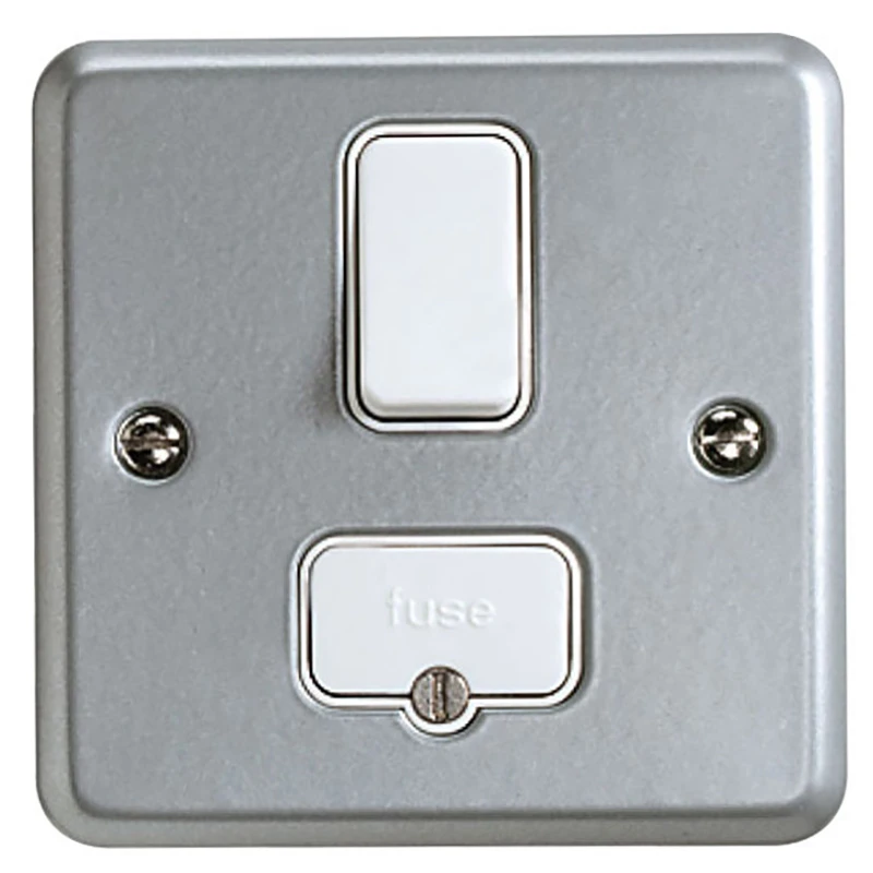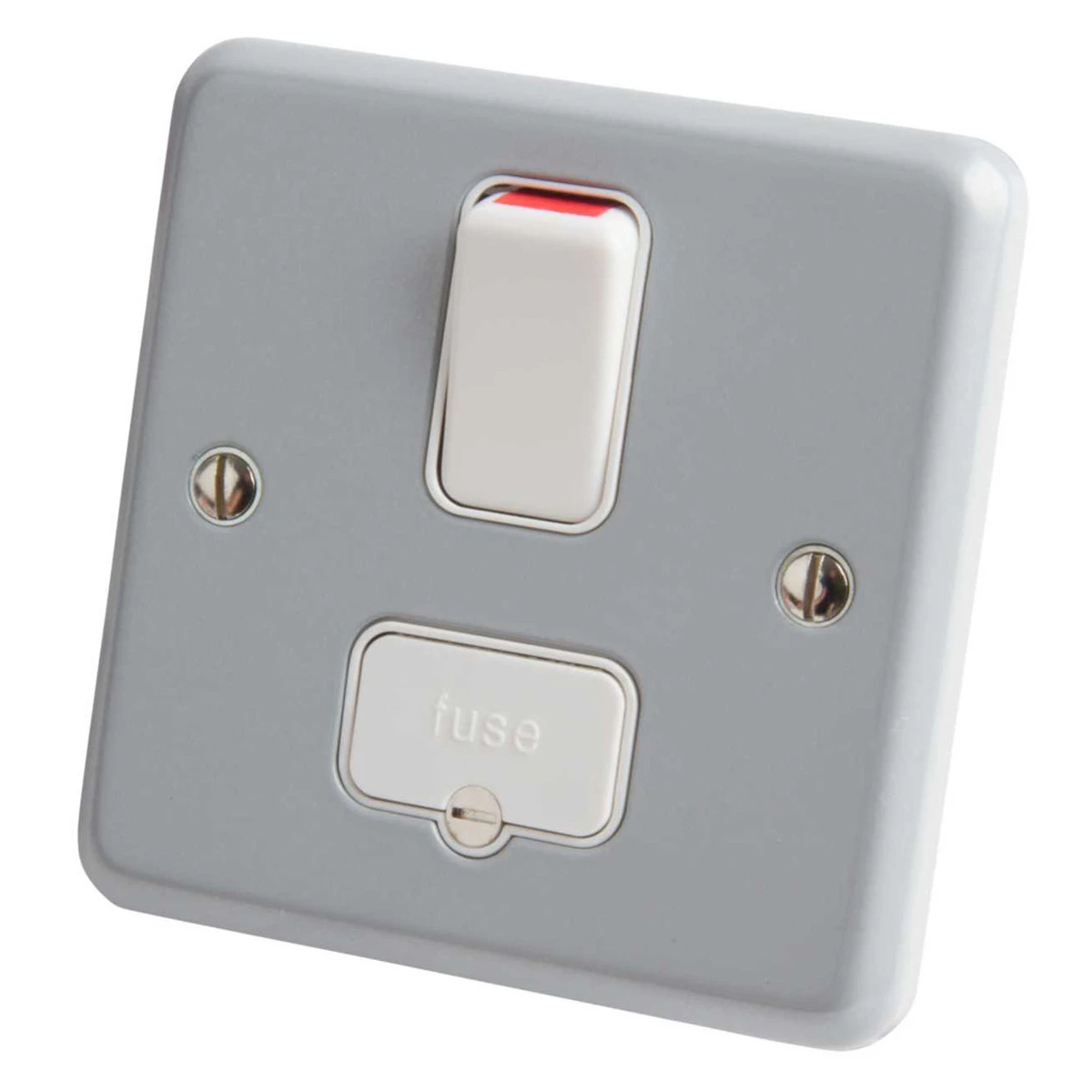 Technical Specifications Technical Specifications Fused connection unit Colour Grey Mounting method Surface mounted Material Metal Colour of rocker/switch operator White Material qualifier Aluminium Nominal current 13 A With on/off switch Yes · Technical Data Sheet – Click to Download