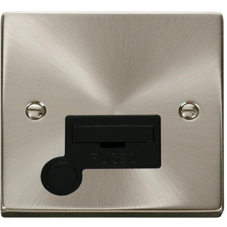 Scolmore International VPSC050BK Deco Connection Unit Flex Outlet 13A Satin Chrome Black Insert Victorian · · · Product: Connection Unit · · Type: Fused · · Qualifier: Low Voltage · · Gangs: 1 Gang · · Includes 13A Switch Socket?: Y · · Fuse Fitted: Y · · Ingress Protection: IP20 · · Insert Colour: Black · · Fixing Centres: 60.3 mm · · Mounting Box Minimum Depth: 25 mm