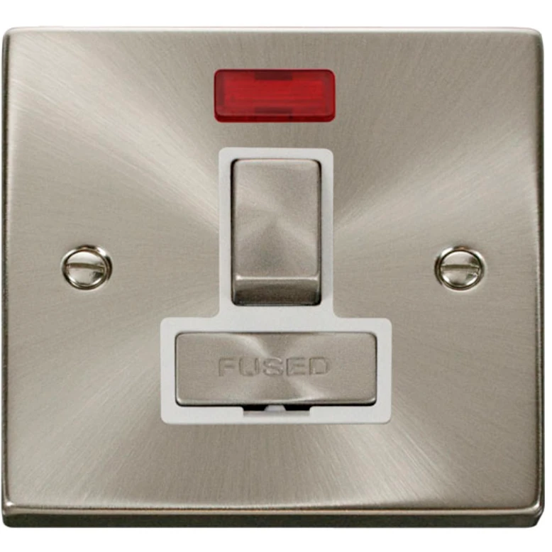 Connection Unit Ingot Switched Neon 13A Sat Chrome White Insert Victorian