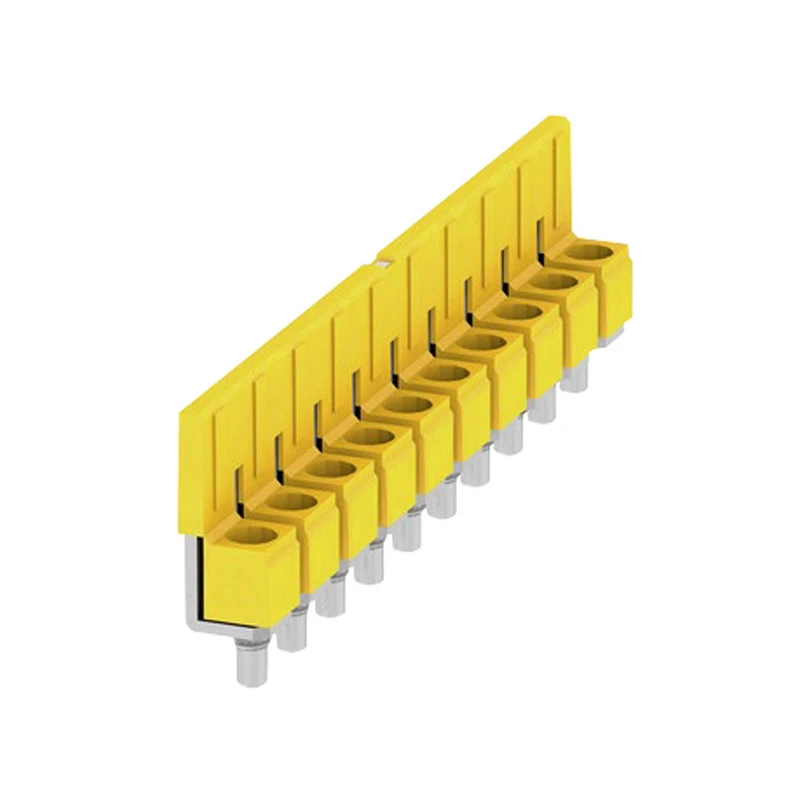 Technical Specifications Technical Specifications Cross-connector for terminal block Mounting method Screw fix Colour Yellow Rated current In 57 A Modular spacing 8 mm Number of bridged clamps 10 Rated voltage 0 V With shock protection Yes Insulated Yes Explosion-tested version ‘Ex e’ No · Technical Data Sheet – Click to Download