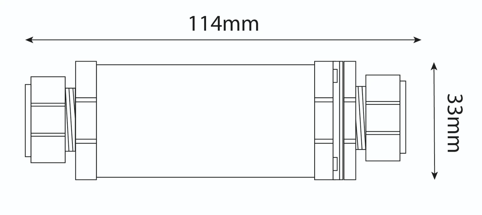 In-line connector with easy hand screw locking nuts and accessible connector tightening points. Complete with IP68 seals and gaskets. · · · 20A rating · · Selection of seals for cable entry · · Easy hand screw locking nuts · · IP68 weatherproof protection · · Robust nylon housing · · Impact resistant housing · · Easy release lid catch · · Multiple M20 threaded screw-outs · · Dimensions (H x W x D): 148 x 108 x 75.5mm