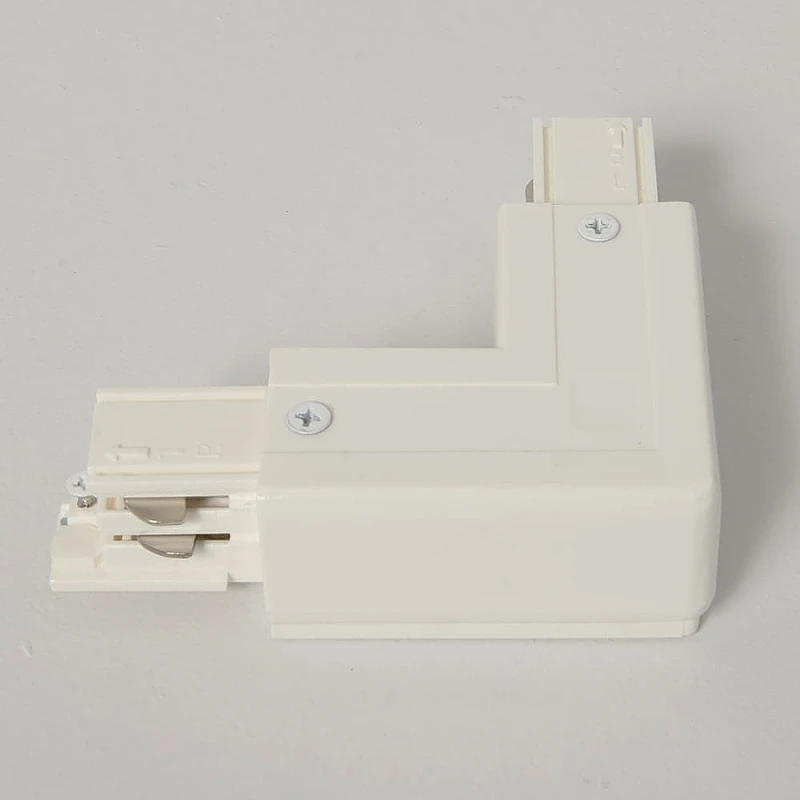 KSR6408WHT Escala 3 Circuit L Connector (L) White · · · 1 year warranty · · 240v 3 circuit mains track · · IP20 protection rating · · Class I · · body-plastic · · 16A max load · · left sided · · L connector