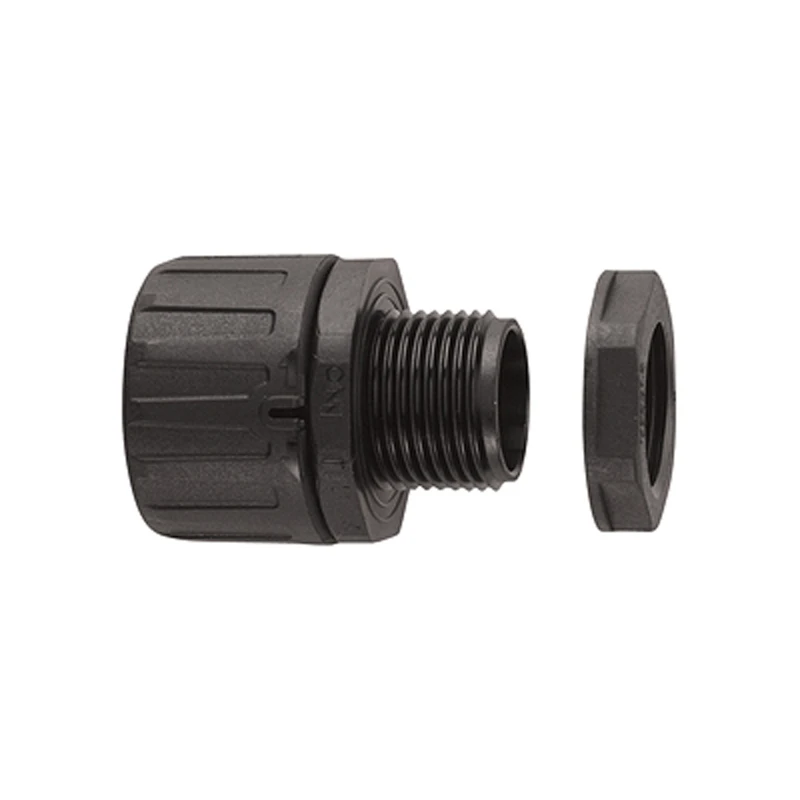 Type FPA Black Nylon (PA66) Fixed External M20 Thread Fitting For 21mm Type FPAS / FPAL / FPR / FPAH / FPI / FPIH / FPP Flexible Conduit IP66 · · · Colour: Black · · Material: Polyamide 66 · · IP Rating: IP66 · · CE: yes