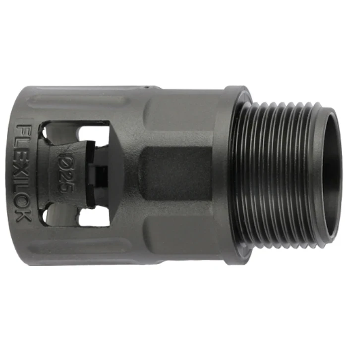 Flexicon FLK28-M25B Connector Straight Fixed External Thread M25 Black · · · Product: Connector · · Type: Straight · · Thread Type: Male · · Ingress Protection: IP66 · · Material: Nylon · · Thread Material: Brass · · Colour: Black · · Nominal Width: 25 mm · · Normal Operating Minimum Temperature: -40 Degrees C · · Normal Operating Maximum Temperature: 120 Degrees C