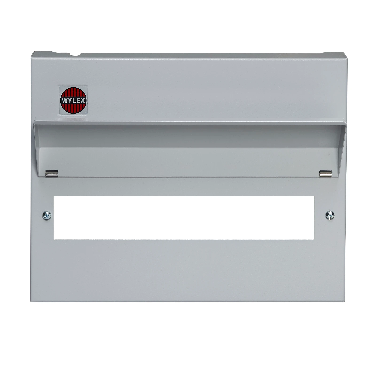 Wylex NM Cover and Metal Visor Assembly for use on upgrading existing NH metal units only (replacing cover, plastic visor and hinges). · · · Upgraded lid assembly for 255mm NH metal enclosures · · All metal construction · · Suitable for a 16 module consumer unit · · For use on upgrading existing NH metal units only
