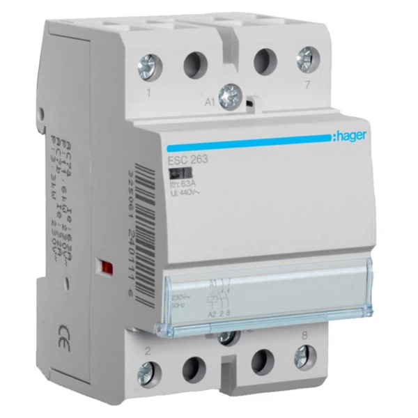 Hager Standard Contactor with screw connection. The contactor ratings are for AC1 loads only – if the load differs from AC1 the contactor may need de-rating. The choice of contactor depends upon a number of parameters that is nature of the supply, power it is switching, characteristics of the load, control voltage required and the number of operations. · · · Contactor ratings are for AC1 loads only · · Screw connection · · European directive WEEE