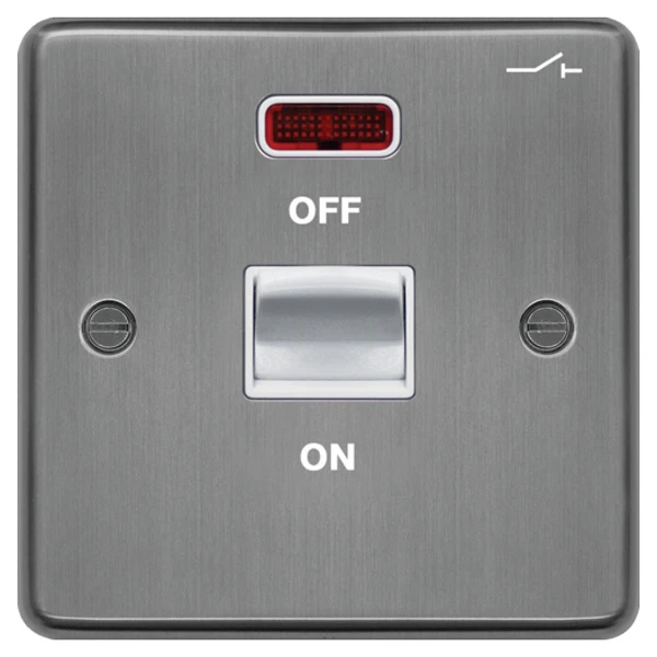 Control Switch 1 Gang DP LED Indicator 50A Brushed Steel White Insert