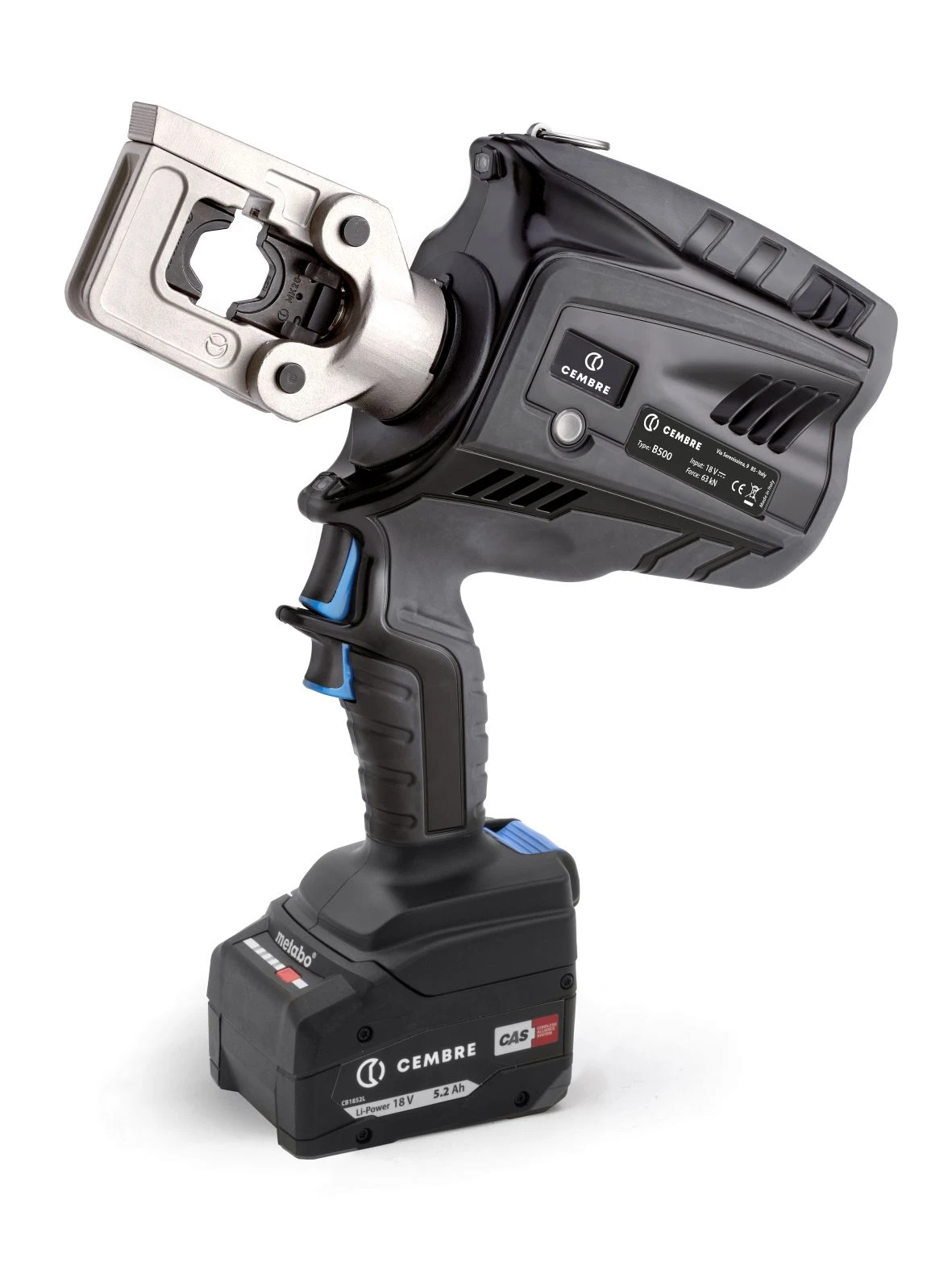18 Volt cordless hydraulic crimping tool to accept ’50’ style die sets 4mm²-300mm² c/w wrist strap, shoulder strap, spare battery, battery charger and a plastic carrying case for storing the tool and die sets (Standard warranty can be extended on this tool by 6 months when registered online with 30 days of purchase) · · · 63kV Crimping Force · · Ergonomically designed for operator comfort · · Durable moulded body offering high resistance to wear and damage · · Lightweight and balanced for great control · · Manual pressure release button · · Features a double speed action: a fast advancing speed for rapid approach of the dies to the connector and a slower more powerful speed for crimping.