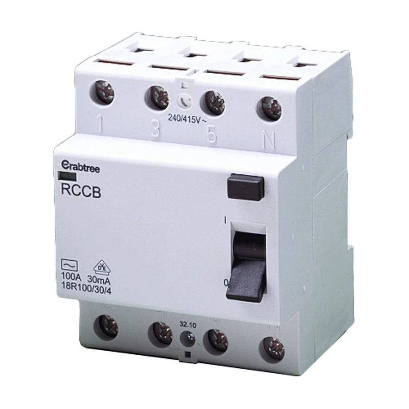 Crabtree Loadstar RCCB is a 4-pole, 30mA sensitivity RCD, suitable for Loadstar commercial/industrial distribution boards. It has a maximum incoming cable capacity of 35mm². · · · Four Pole RCCB, 100A 30mA, Type AC, For use with Crabtree Loadstar distribution boards, For incoming options can be used with 18LK125 connection kit · · EN61008 and IEC 61008 standards · · Type AC RCD class