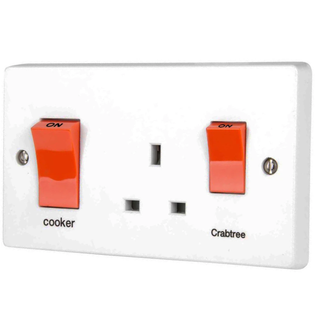 Crabtree Capital 4521/1 is a faceplate that is marked “COOKER”, is fully design co-ordinated to offer consistent styling and inherent safety features across a broad range of applications. · · · Screwed terminals · · White Plastic