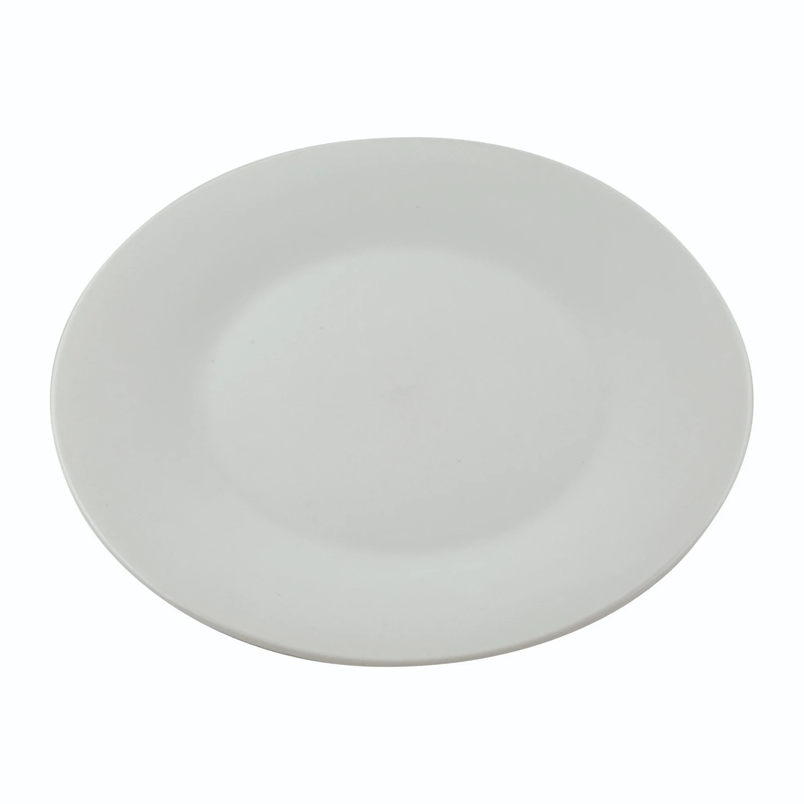 A white porcelain dinner plate (240mm diameter) that is suitable for any kitchen or canteen environment. · · · Easy to clean · · Chip-resistant: The glaze on the plate is chip-resistant, so it will not easily chip or break. · · Can be used for a variety of foods: The plate can be used for a variety of foods, such as pasta, rice, and vegetables. · · Easy to clean: The plate is easy to clean, simply wash it with soap and water. · · Microwave and dishwasher safe: The plate is microwave and dishwasher safe, so it is easy to clean and reheat food. · · Long-lasting: The plate is long-lasting and can be used for many years.