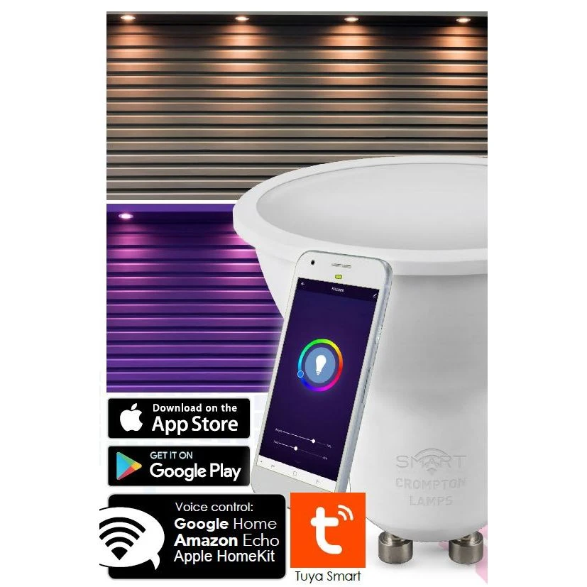 Crompton 12394 LED Smart GU10 Thermal Plastic Dimmable 5W RGB+ 3000K