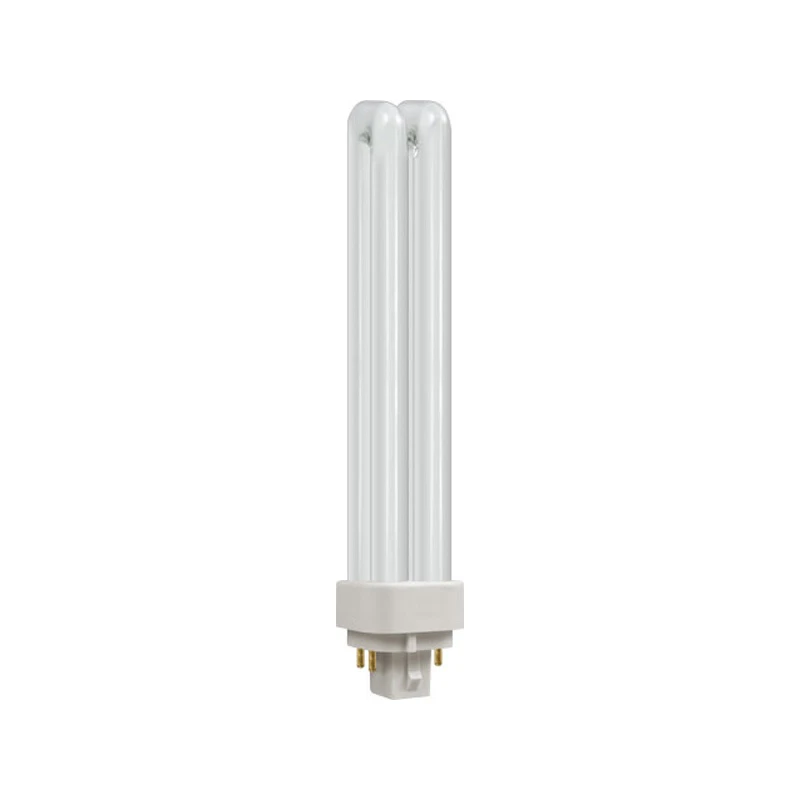 Dimmable compact fluorescent double turn DE-Type lamp (PLC-E). Commonly used in commercial and domestic luminaires. Ideal for use in downlights, bulkheads, pendants and other suitable applications. Spectra-Plus Triphosphor coated for excellent colour rendering, high output and long life. Suitable for dimming and use in emergency luminaires. Separate ballast/control gear required. 10,000 hour life 8,000 switching cycles G24q-3 4-Pin cap 3500K white colour temperature Colour rendering index =85 Suitable for dimming Recommended for indoor use only 2 year warranty · · · 10,000 hour life · · 8,000 switching cycles · · G24q-3 4-Pin cap · · 3500K white colour temperature · · Colour rendering index =85 · · Suitable for dimming · · Recommended for indoor use only · · 2 year warranty