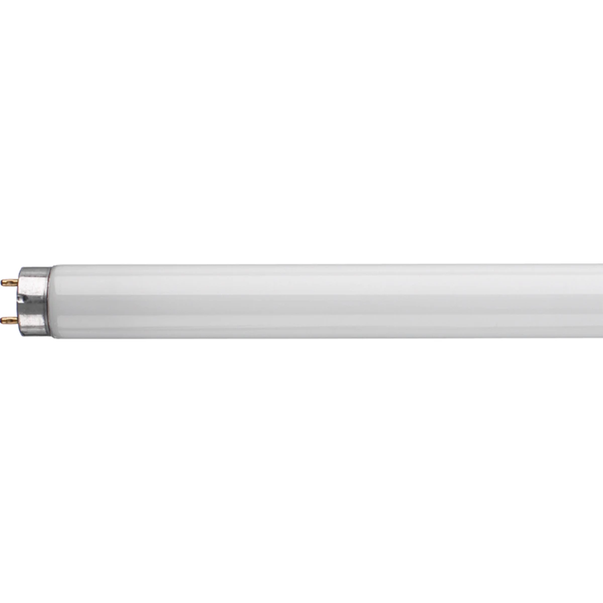 T8 linear fluorescent tube with length of 4′ and diameter of 26mm. T8 is the most commonly used fluorescent tube size and features Spectra-Plus Triphosphor for high colour rendering, high lumen maintenance and extended life. The tube is suitable for retail stores, garages, offices, warehouses and schools. 15,000 hour life G13 cap 4000K cool white colour temperature Colour rendering index ≥85 Not suitable for dimming Recommended for indoor use only Instant full light · · · 15,000 hour life · · G13 cap · · 4000K cool white colour temperature · · Colour rendering index ≥85 · · Not suitable for dimming · · Recommended for indoor use only · · Instant full light