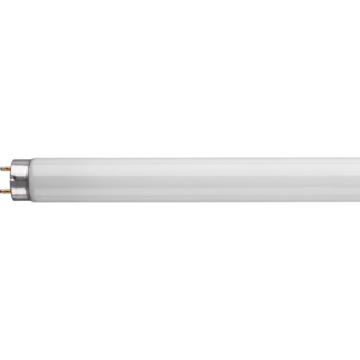 T8 linear fluorescent tube with length of 4′ and diameter of 26mm. T8 is the most commonly used fluorescent tube size and features Spectra-Plus Triphosphor for high colour rendering, high lumen maintenance and extended life. The tube is suitable for retail stores, garages, offices, warehouses and schools. 15,000 hour life G13 cap 3500K white colour temperature Colour rendering index =85 Not suitable for dimming Recommended for indoor use only Instant full light · · · 15,000 hour life · · G13 cap · · 3500K white colour temperature · · Colour rendering index =85 · · Not suitable for dimming · · Recommended for indoor use only · · Instant full light