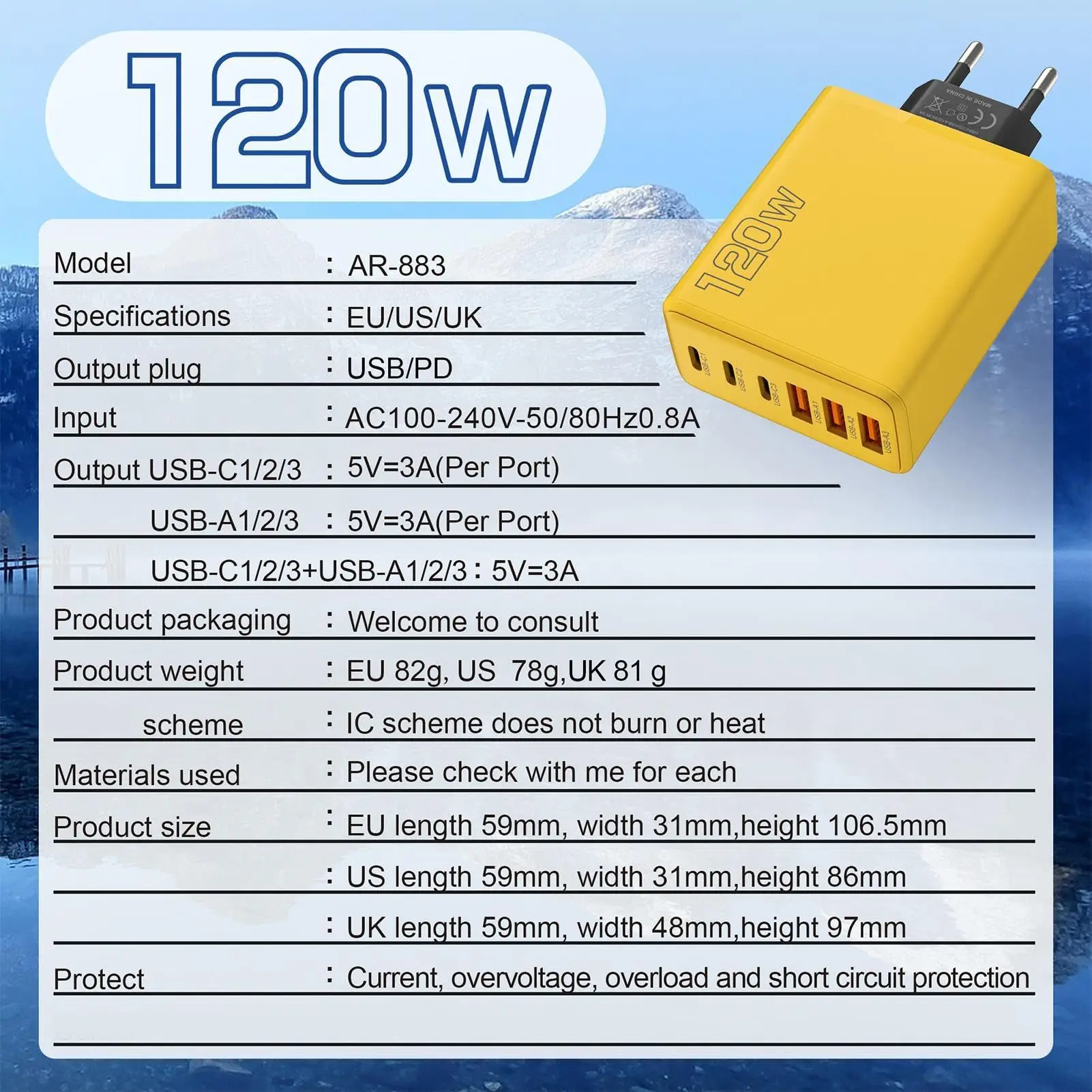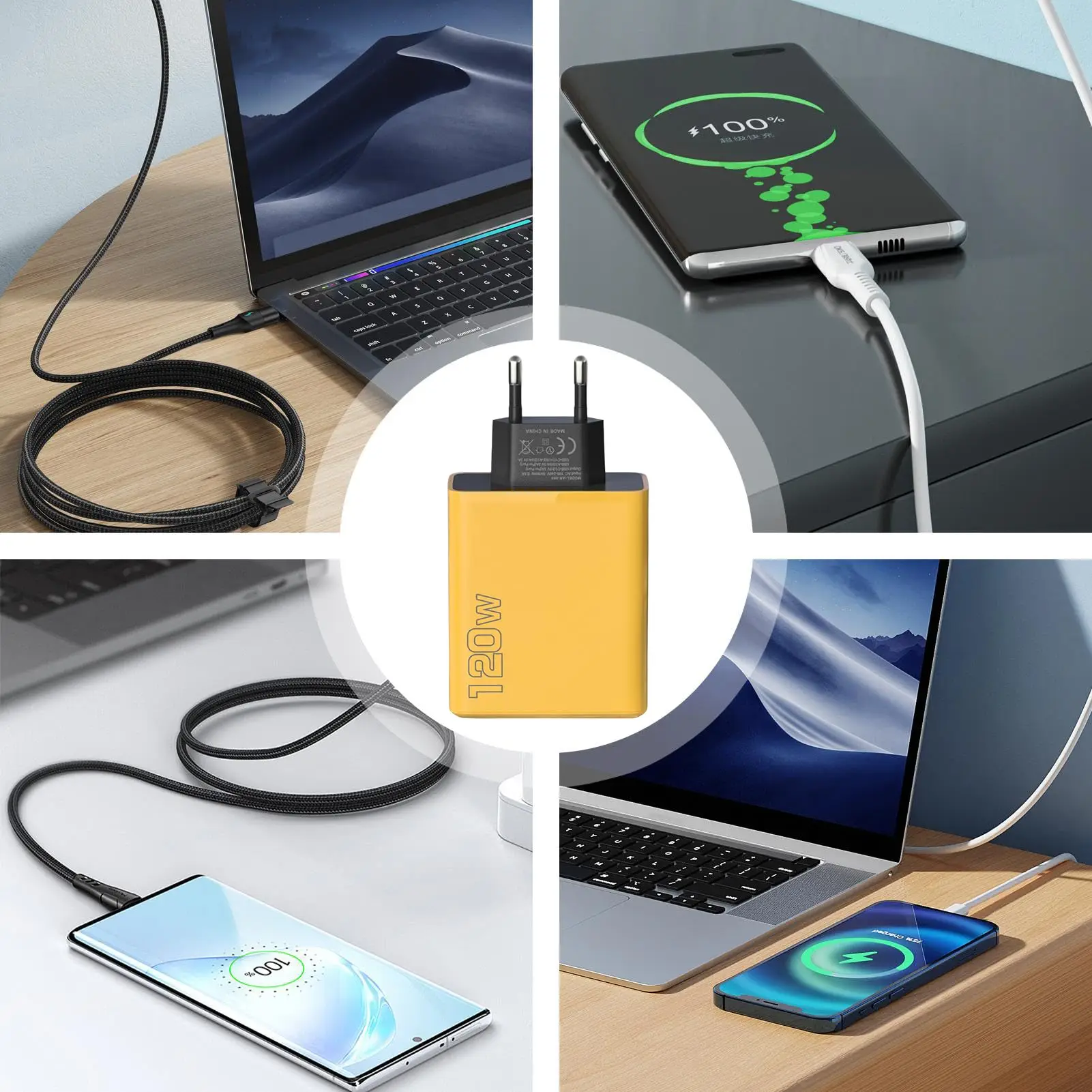 CTX Factory 120 Watt Compact USB Charger Adapter Fast Charging Multi-Port C Charger Block with QC3.0 International Wall Plug