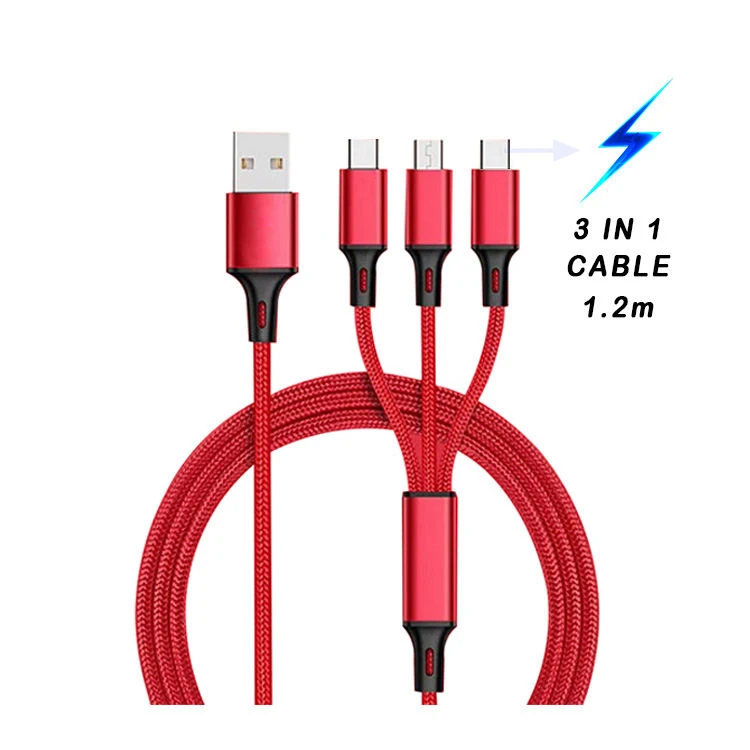 Custom 3in1 Charging Cable Nylon Braided Aluminum Alloy 3 in 1 Mobile Phone Charging Cable Type C Android Micro Usb Cable Pack of 50