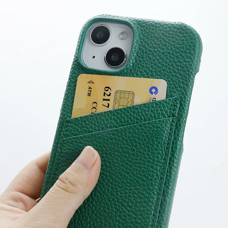 Custom Designer with Card Holder Shockproof Real Wallet Back Cover Genuine Pebble Leather Case for Iphone