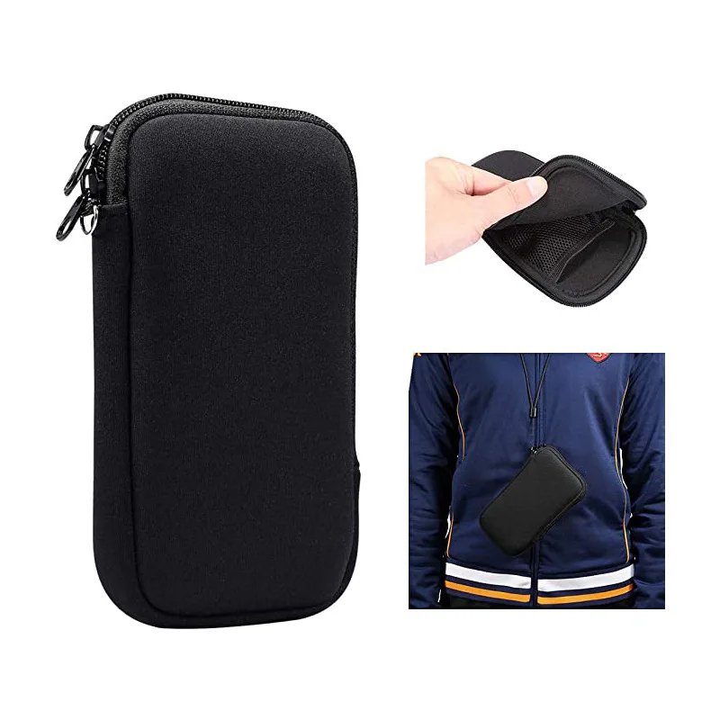 Custom Logo Zipper Universal Neoprene Mobile Cell Phone Sleeve Bag Earphone Smartphone Pouch Case with Crossbody Neck Strap