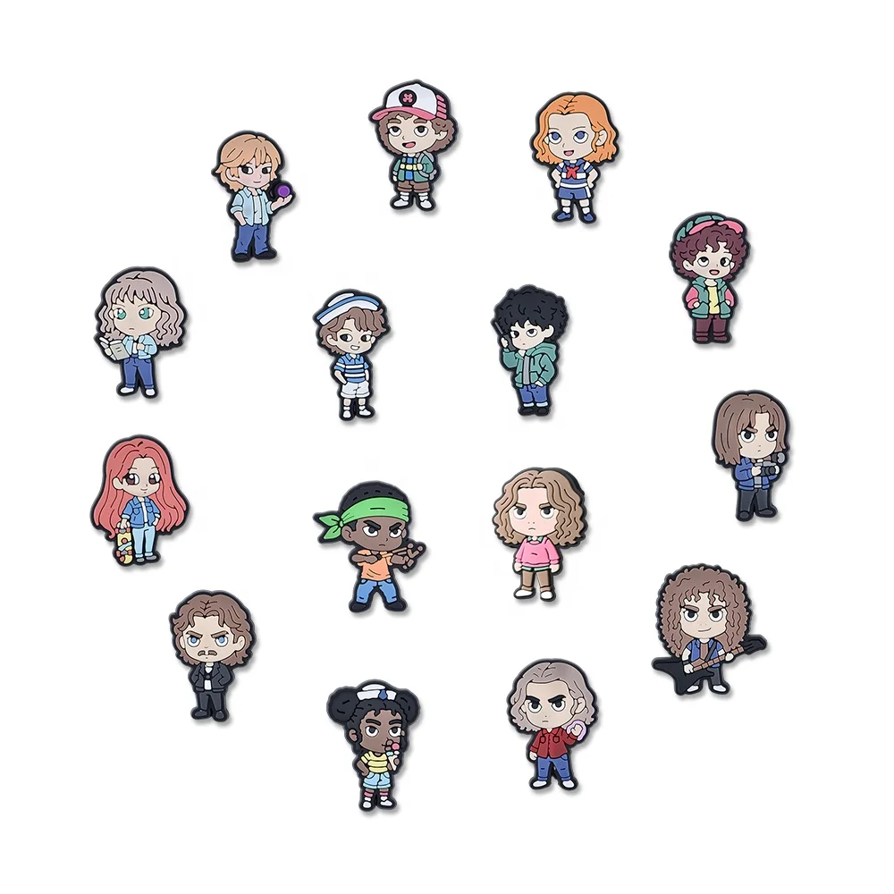 Cute Stranger Things Characters Shoe Charms for Clog Cartoon Eddie Eleven Dustin Mike Erica Hopper Decorative Shoe Charm