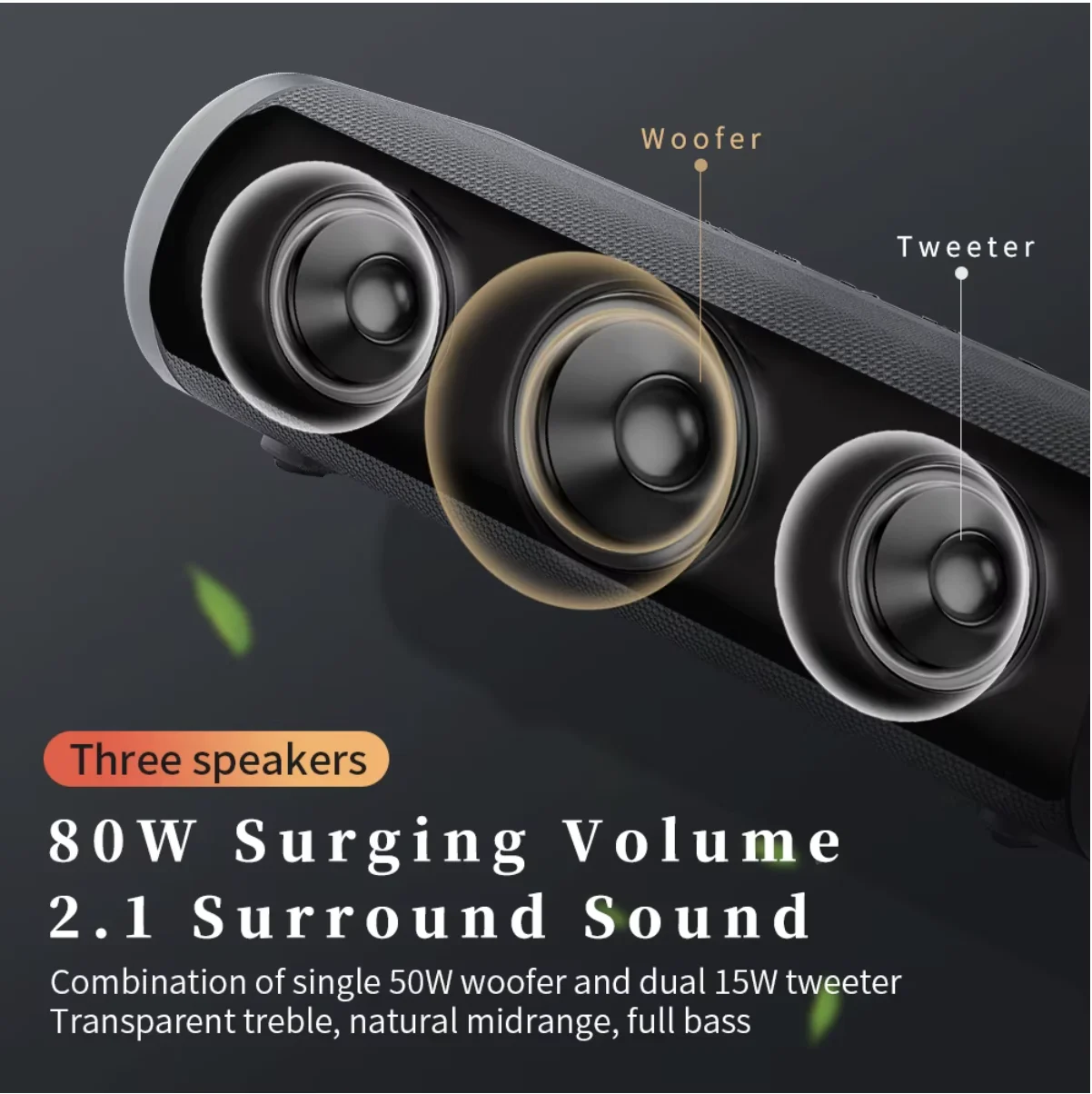CYB-T9 80W Subwoofer 2.1 Stereo Channel Portable Output Deep Bass Wireless Speaker With Power Bank Function, TF Card, AUX, TWS
