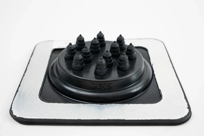Fit and Forget Flashing, 12 ports for 4-8mm cable entry protects and waterproofs. For use on non tiled roof applications. · · · Multi port up to 12 cable Entries · · 4mm to 8mm cables accommodated · · Premium EPDM ensures water proofing · · Aluminium flange fixing strip · · bends and forms to all roof profiles