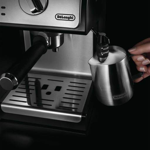 With premium aluminium finish and 3 filters: one cup, two cups and ESE pods | Two levels of froth regulation, creamy froth for Cappuccinos or hot milk to prepare an Italian style Caffe latte | Complete set of filter for one cup, 2 cups and for pods; and external tamper | Removable water tank with visible water level | Option to house big glasses or mugs up to 13 cm tall | Turns off automatically 9 minutes after last usage