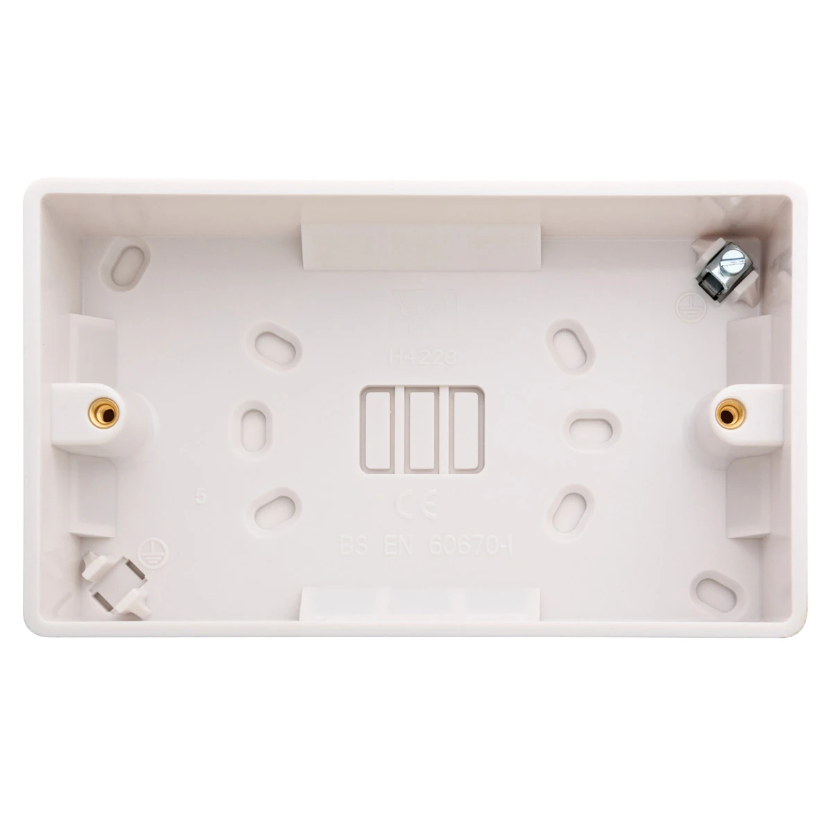 Stylish and slim with rounded corners this 2 gang 28mm pattress surface back box is from the Designa Curve accessory range combining the latest modern design techniques together with reliability, value and outstanding quality. End users want invisible accessories, which is why we chose a soft neutral white finish that is uniform through out the range and is easy to wipe clean. · · · Curve profile design to suit any application · · Durable and long lasting backed by a 25 year guarantee · · Tested and certified by ASTA:BEAB, Intertek and HKSTC · · Fully adjustable with large pillat fixing point · · Supports surface mounting method · · 2 Gang · · 28mm Depth · · Top entry suitable for mini-trunking · · Suitable for Designa Curve 2 gang accessories · · Earth loop provision
