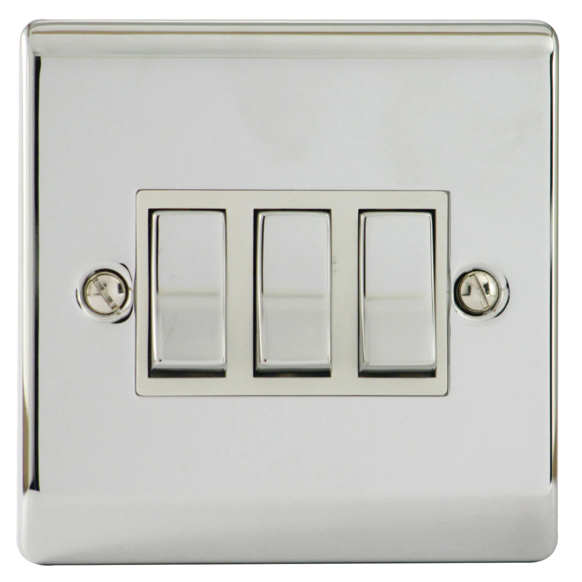 Designa 22S532 Plate Switch – 3 Gang 2 Way 10AX Polish Chrome with White Insert