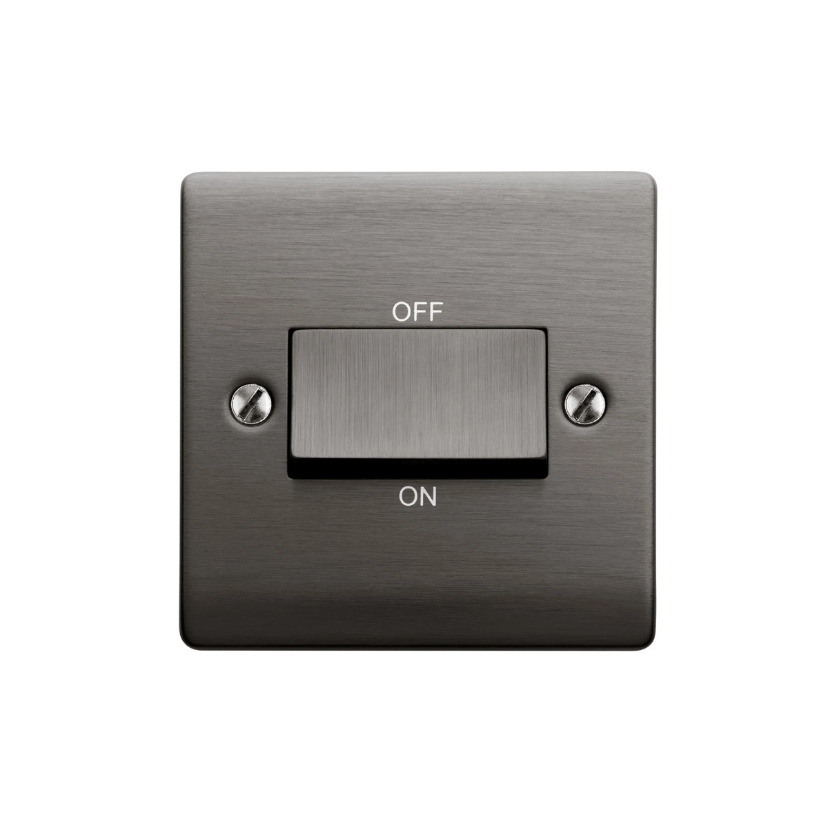 A high quality stylish and slim 1 Gang Triple Pole Fan Isolator Switch Graphite. Our extensive range of switches are all 10AX rated as standard ensuring that they are suitable for commercial as well as domestic applications. The Curve decorative range offers an affordable decorative range at outstanding value, coming in four stunning finishes; satin steel, polished chrome, black nickel and graphite. · · · Slim 5.5mm raised curve profile design to suit any application · · High quality steel plated graphite finish · · Tested and certified by ASTA:BEAB, Intertek and HKSTC · · Designed to fit UK standard 1 Gang accessory boxes · · Supplied with M3.5x25mm fixing screws · · Colour codes terminals and backed out and captivated screws for fast installation · · Clearly marked terminals for ease of identification · · Used to isolate supply to extractor fans · · Supplied with colour matching screws