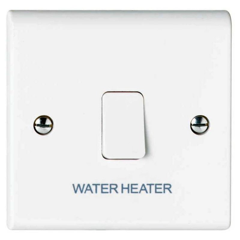 Deta Slimline Switch with water heater is uniquely shaped slim profile with curved top and bottom edges in Slimline style with concave rockers. Easy to install with coloured terminals, where terminals have clearly embossed with white printed markings and is supplied in individual protective bags. · · · Unique slim profile with curved top and bottom edges · · Terminals have clearly embossed and white printed markings · · Terminals have large lead-ins · · Urea flammability classification UL94 grade V-C · · 25-year guarantee · · BS EN 60669-1 · · 25-year guarantee