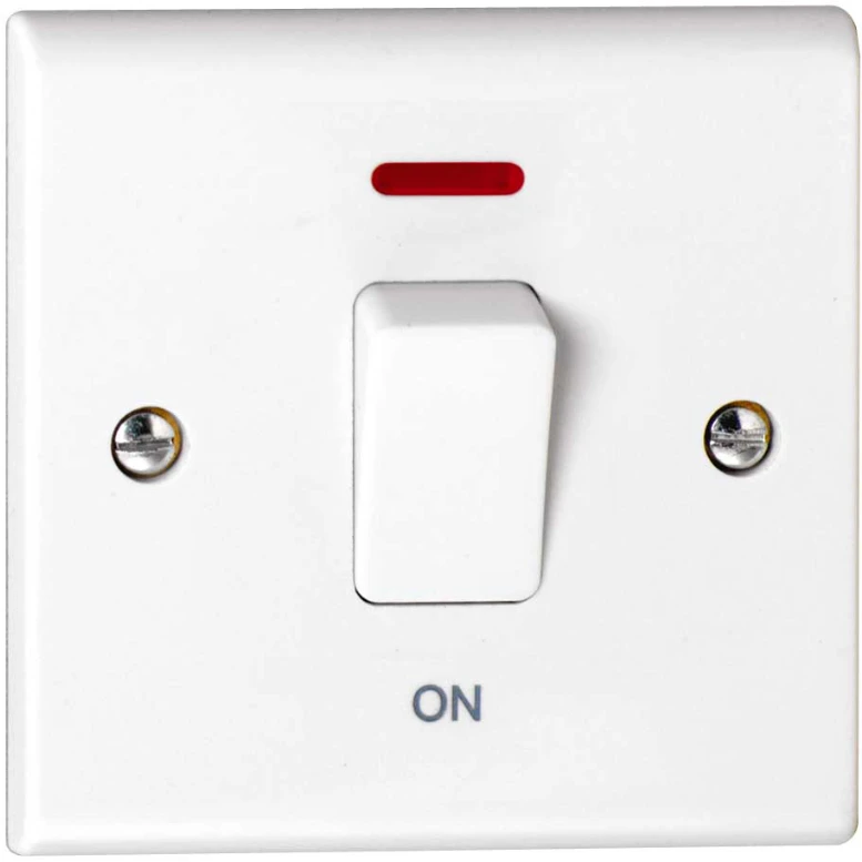Deta Control Switch 1 Gang DP Neon 50A White Moulded White Rocker