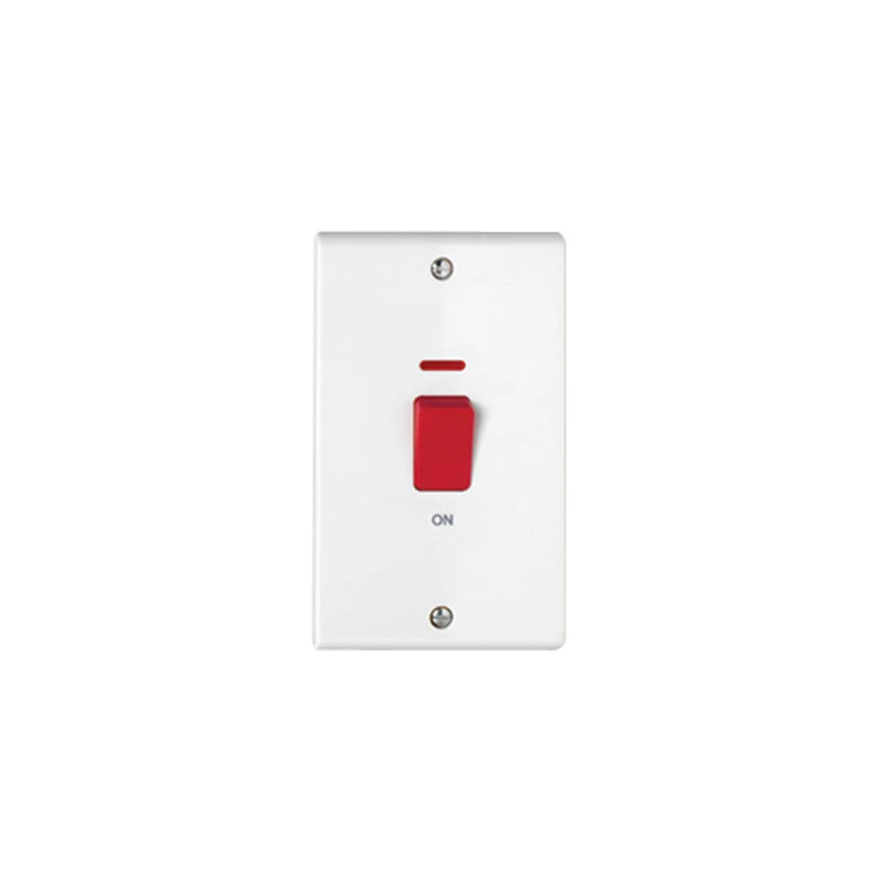 Deta Control Switch 1 Gang DP Neon (Tall 2G Plate) 50A White Mould Red R