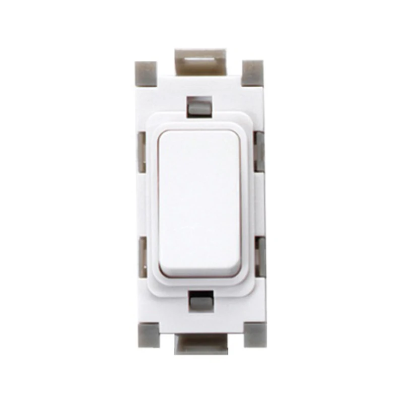 Deta Grid switch Module is available with curved rockers. Switches are X rated and do not have to be de-rated for fluorescent loads. Switch compliance with BS EN 60669-1 standards. Switch has clear terminal markings and are supplied individually in protective bags with 25-year guarantee. · · · Clear terminal marking · · Front loading into grid frame · · Switches are X rated and do not have to be de-rated for fluorescent loads · · Compliance with BS EN 60669-1 standards · · 25-year guarantee · · BS EN 60669-1 · · 25-year guarantee