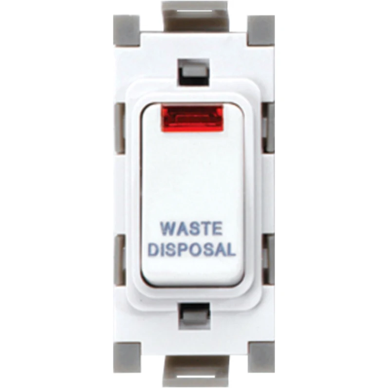 Deta Grid Switch DP Module Neon In Rocker 20A White Marked Waste Disposal