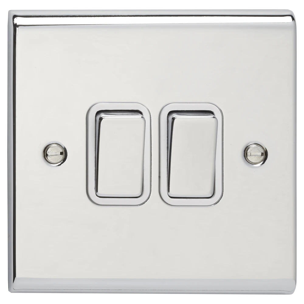 Deta Plate Switch 2 Gang 2 Way 10A Chrome White Insert