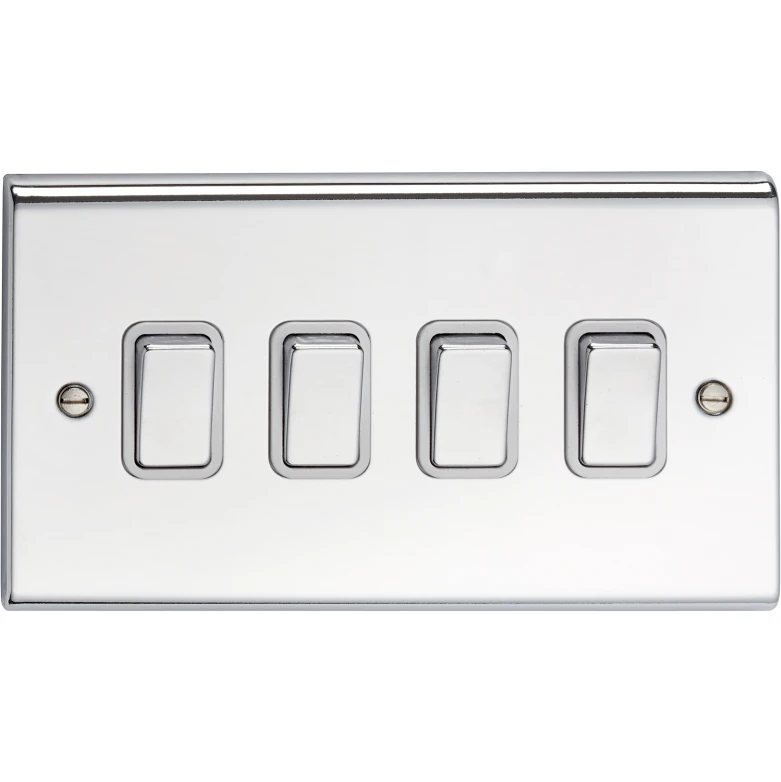 Deta Plate Switch 4 Gang 2 Way 10A Chrome White Insert