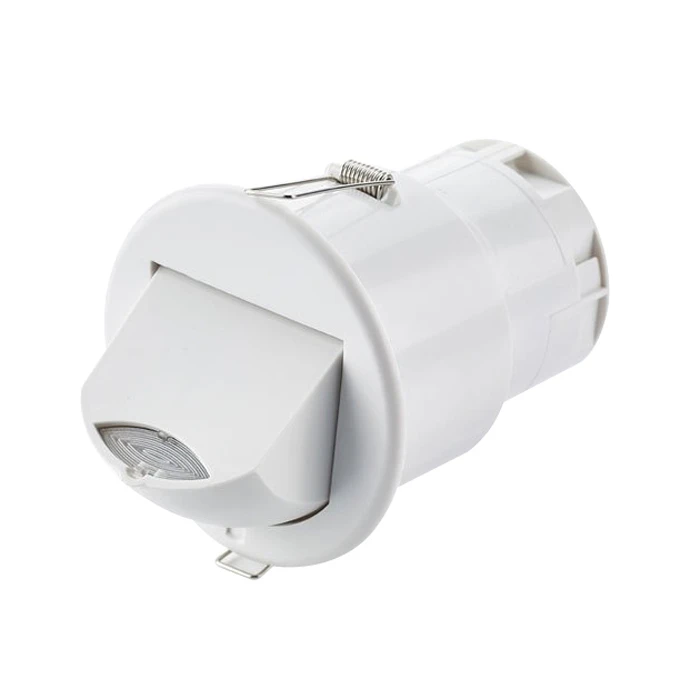 CP Microwave Presence/Absence Detector incorporates an innovative locking mechanism to prevent tampering. By changing the angle of the head, different detection patterns can be achieved to suit the application. An integral sensitivity adjustment allows the detector to be fine-tuned to its environment. The detector is self-contained and can be flush or surface mounted using a separate detector back box. Ideal for corridor lighting control. · · · Switching with lux level sensing · · Programmable via our programming handset · · Integral sensitivity adjustment · · PRM Switching