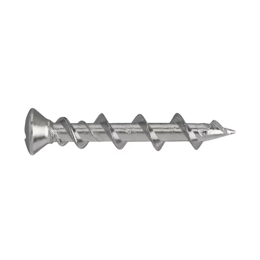 An all steel, tension-free, one piece, threaded fastener. Use to fasten various fixtures directly to drywall, wood, concrete, sand-lime stone or brickwork · · · No plug needed · · No pre-drilling in wood, gypsum board or drywall · · Suitable for light to medium duty anchoring · · The all metal, one piece steel fasteners have a corkscrew shaped thread that bites into the base material to give a solid hold