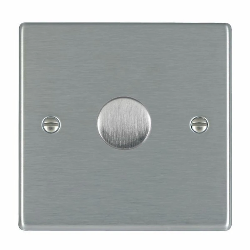 Dimmer Switch 1 Gang LED 2 Way Push On/Off Rotary 100W 88x88mm Satin Steel